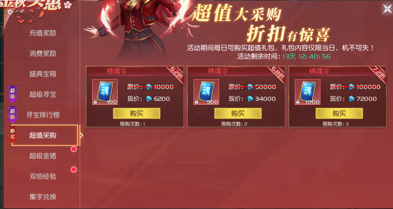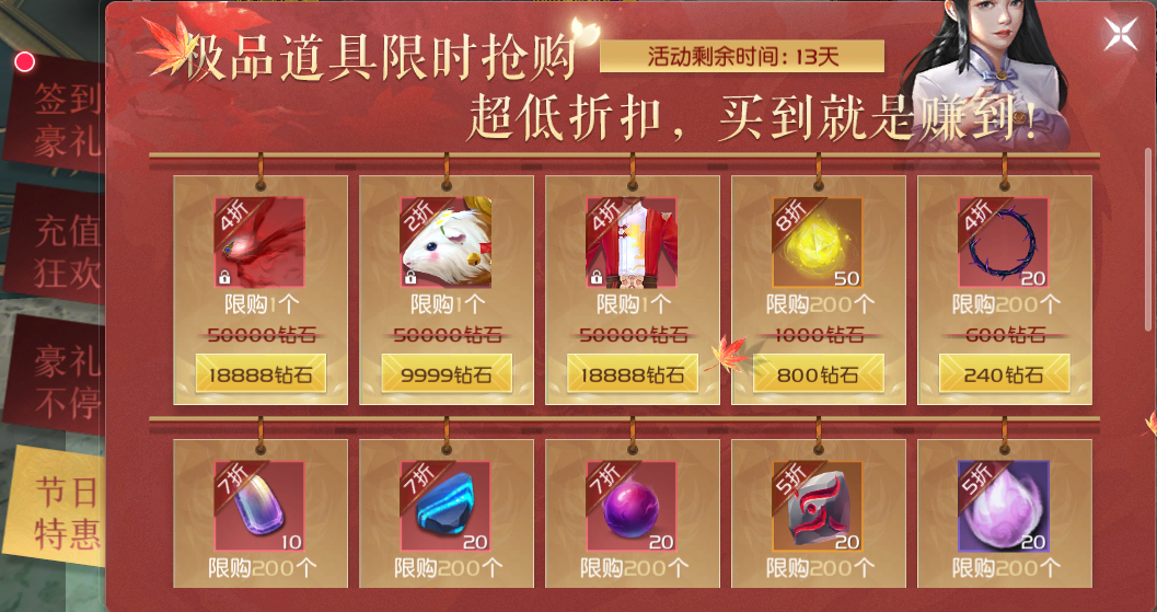 活动规则:活动期间消耗钻石购买特价道具奖励