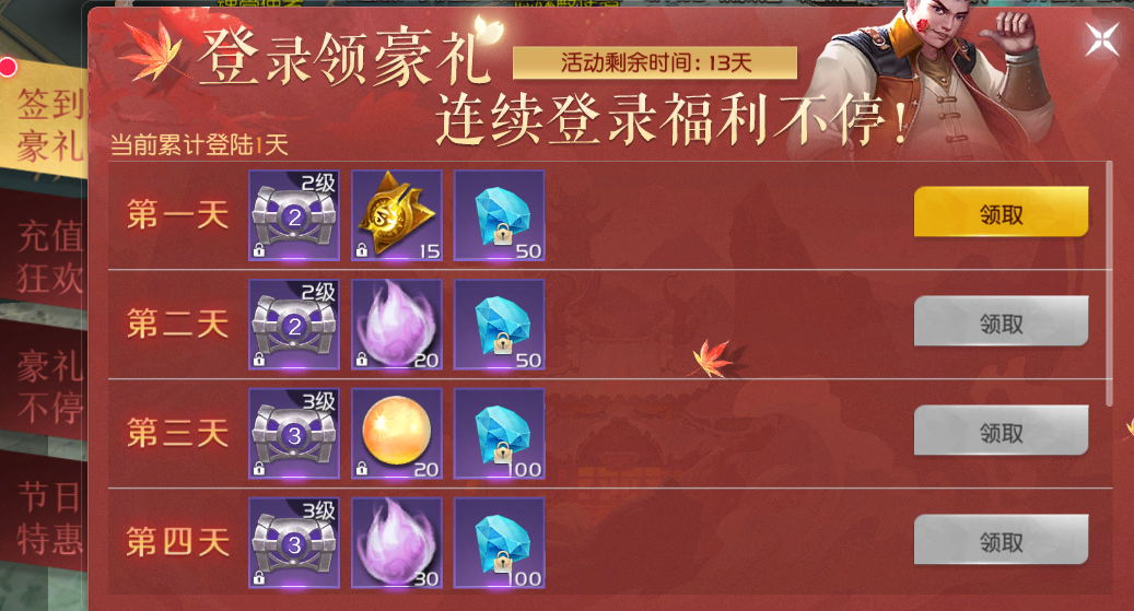 活动规则:活动期间累计登录游戏即可领取奖励一份